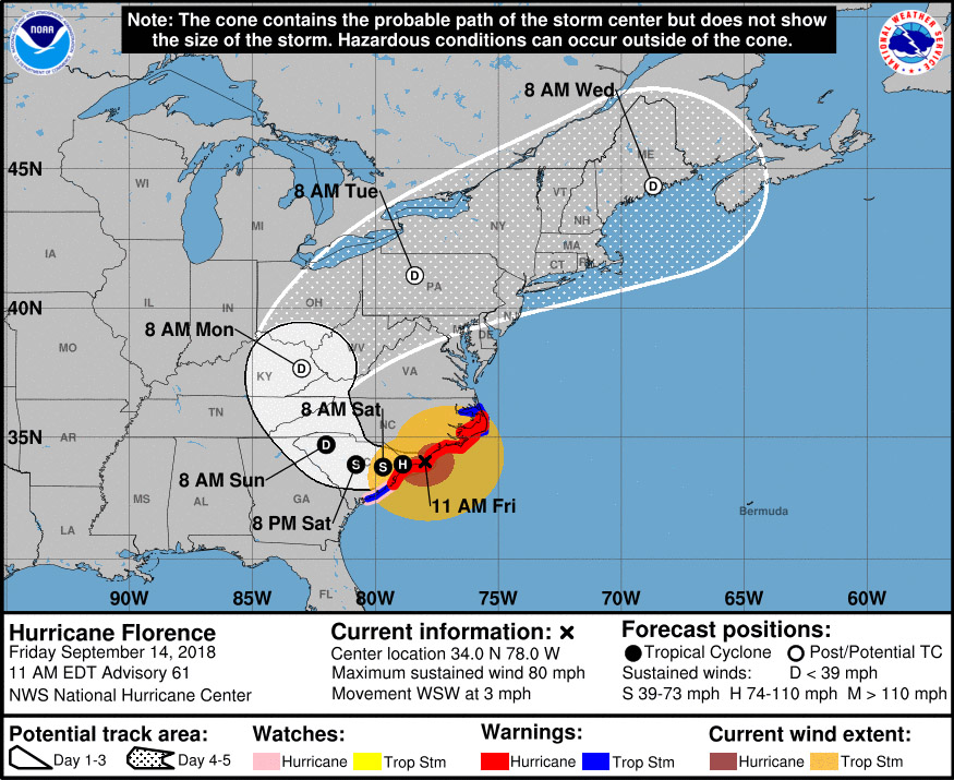 Hurricane Florence is about to hit the Carolinas and slowly move over South Carolina dumping 30+inches of rain. There will be flooding, property damage and possible injuries. If your able to help in any way please let us know. We thank you in advance for everything you able to do. Please feel free to contact us with questions or concerns.